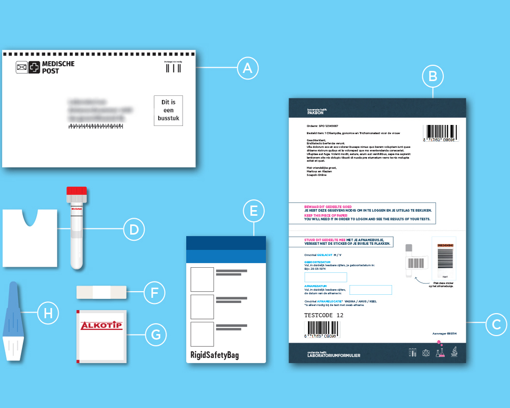 Het pakket bestaat uit 2 losse afnamesets. De test voor chlamydia en gonorroe kun je betrouwbaar afnemen vanaf 14 dagen na de laatste onveilige seks. Voor syfilis kan dit vanaf 4 weken. Je kunt de afnames gescheiden van elkaar doen, en hoeft dus niet te wachten. Dat scheelt! Heb je klachten? Dan kun je eerder testen. Is de test ondanks je klachten negatief, adviseren we je om de test na de windowfase te herhalen.